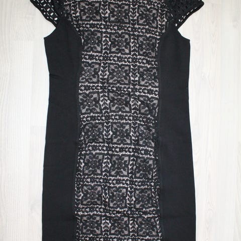 Knælang sort/grå kjole – str. 44 – kun brugt én gang