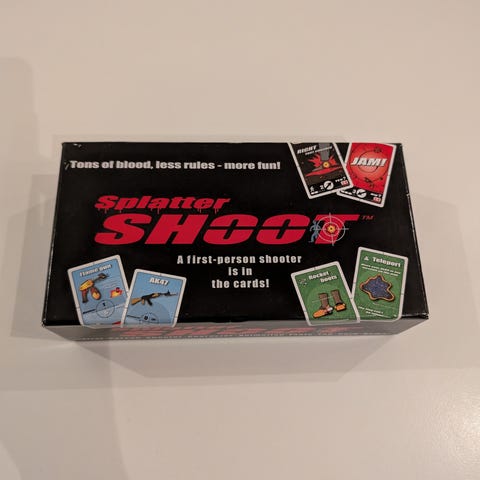Splatter Shoot er et sjovt, hurtigt skydespil, og ideen med, at man kan spille overalt, virker faktisk. Spillet bliver endnu sjovere, hvis man får en øl eller to imens, så det kan eksempelvis tages frem og spilles under en fest, mens man venter på næste ret eller mellem hovedretten og desserten.