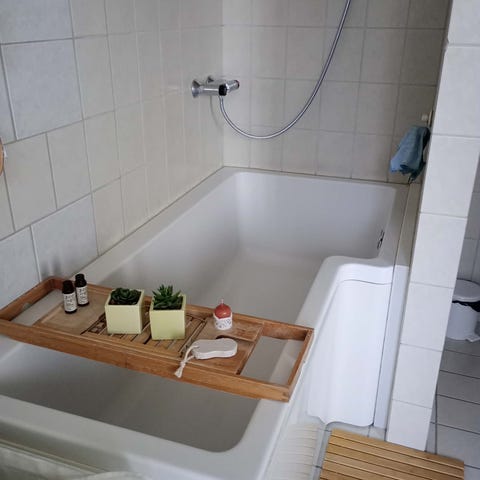Dejligt fritstående badekar med løvefødder.