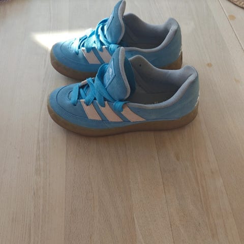 Adidas sneakers i str. 40. Modellen har brun overdel med hvide striber og hvid mellemsål. Brugt maks 1 gang. Farven var ikke mig