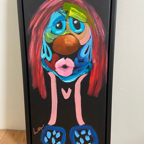 Flot farverigt værk, som desværre ikke passer til den placering, som det indkøbt til.