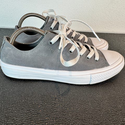 Converse, str. 39, blå, næsten som ny, brugt få gange, god til forårets fester, købspris kr. 600,00 i original æske