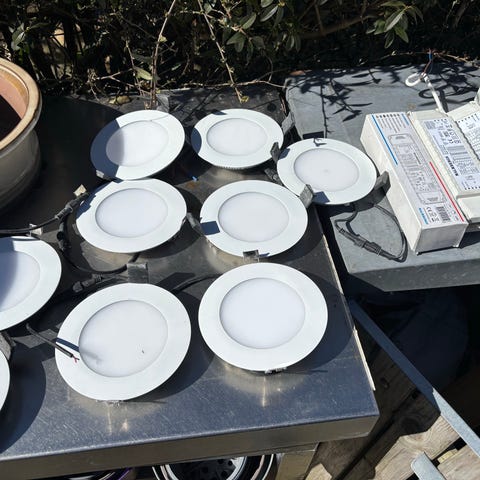 Lampen består af 4 indbygningsspots monteret i to hvide plader.