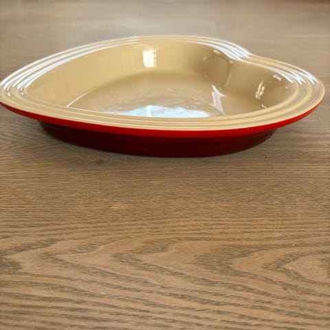 Le Creuset hjerteformet ovnfast fad stentøj rød