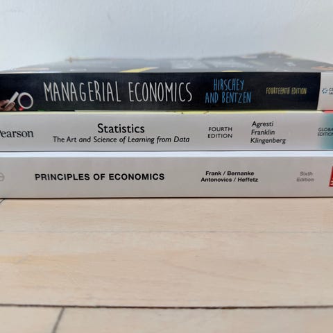 Samling af lærebøger inden for økonomi og handel. Bøgerne omfatter emner som strategisk ledelse, organisationsteori og managerial economics. Er som nye brugt til HD studiet del 1. En for 250kr alle for 600kr.