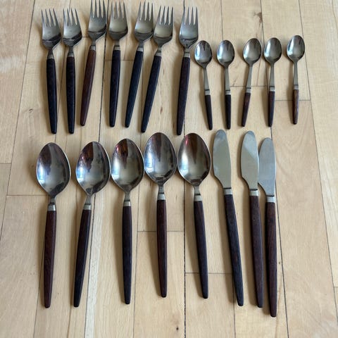 12 Eton Raadvad knive i rustfrit stål, skaftet er af palisander.