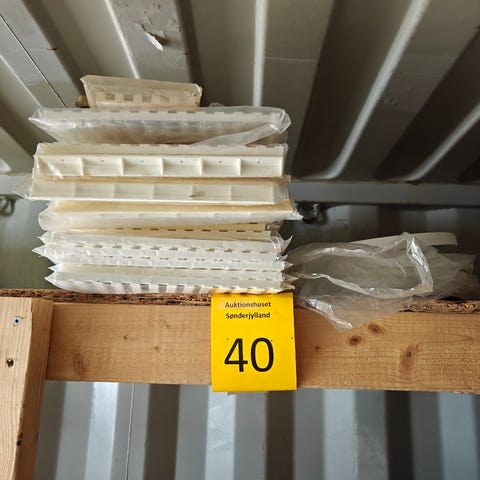 Ventilgitter i hvidmalet metal. Rektangulært gitter med aflange ventilationshuller, egnet til montering i fx dør, væg eller sokkel for at sikre luftcirkulation mellem rum. Velegnet til brug indendørs, hvor der er behov for passiv ventilation. Har været brugt i forbindelse med indbyggede/skjulte radiatorer.