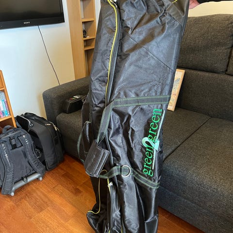Golf Copenhagen rejsecover i sort med lynlåslommer og bærehåndtag. Tasken har polstret top og plads til golfsko