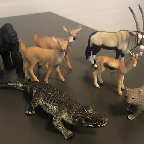 Inhold: 2 tiger, 1 løve, 1 løve-unge, 1 Zebra, 1 leopard og en kænguru.
