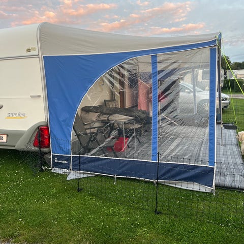 Pæn og velholdt. Solsejlet er 250 dyb.