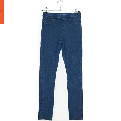 Fremstillet i denim-materiale, velegnet som hverdagsbukser til børn i omkring str. 140.