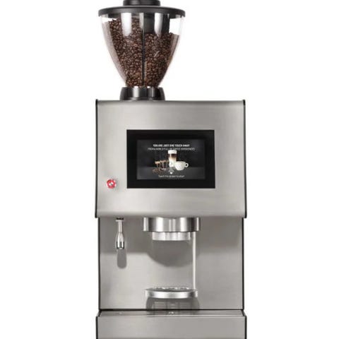 Fuldautomatisk cafe espressomaskine med indbygget kaffekværn. Direkte vandindtag og afløb. Slange og mælkekøler til frisk mælk. Varmeplade på toppen af køleskab til opbevaring af kopper så kaffen serveres i varme kopper. 3 beholdere: en til alm kaffebønner, en til espresso bønner og en til kakaopulver. Købt og installeret af interGastro i 2014. Brugt i café frem til 2018. Har stået på tørt lager siden. Virkede ved nedtagning. Nypris 60.000.- Sælges billigt uden nogen form for garanti og på købers ansvar.