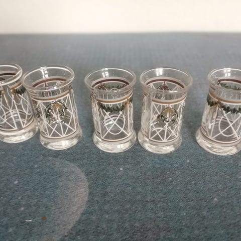 Fin stand. Ingen skår eller afslag, - dog er der mangler på guldmalingen på flere af glassene.