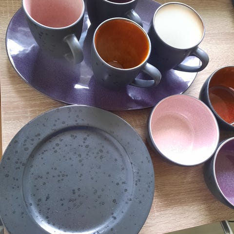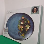 Ovalt fad i sort stentøj med en glansfuld, mørkeblå glasur på indersiden kombineret med mat reaktiv glasur på ydersiden i målene 36 x 25 cm. Fadet er perfekt til salater og anretninger. Velegnet til opvaskemaskine, samt 4 skåle med omkreds 12 cm.