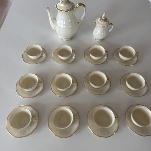 Finsk Aribia porcelæn, mokka, espresso, retro stel, kaffestel, vintage porcelæn, guldkant