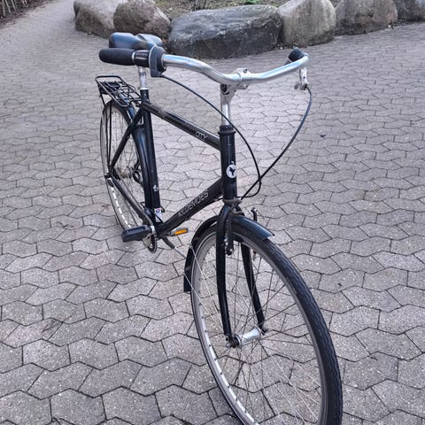 Cyklen kører fint og er let at træde. Den er i god stand med almindelige brugsspor, men fungerer som den skal.