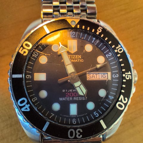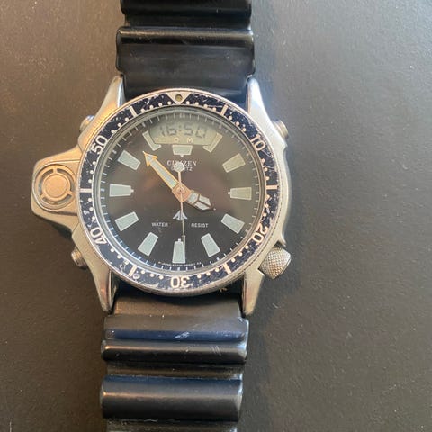 Citizen herreur med dykkerinspireret design. Virker fint.