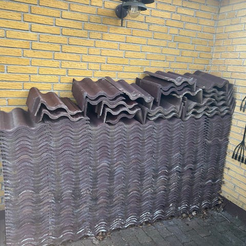 Tagplader i bølgeprofil i hvid farve. Egnet til tagdækning på fx skur, carport. Pladerne er nye aldrig været opsat der er 3 stk på 607 cm og dækker en meter de små plader som ligger oven på har lidt huller foroven ikke nogen betydning når de er opsat , eller kom med bud