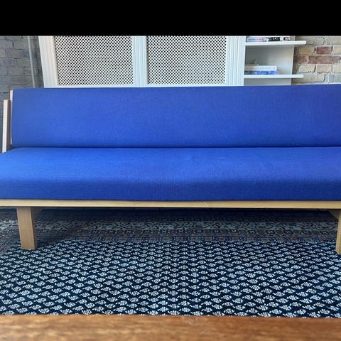 Hans J. Wegner sovesofa / Daybed med træramme og gråt betræk