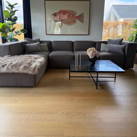 Lækker flydersofa med chaiselong – som ny