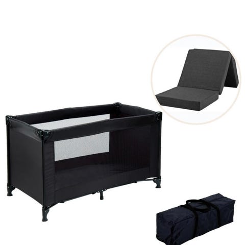 Sammenklappelig feltseng 193 cm – sort rejsefeltseng med puder