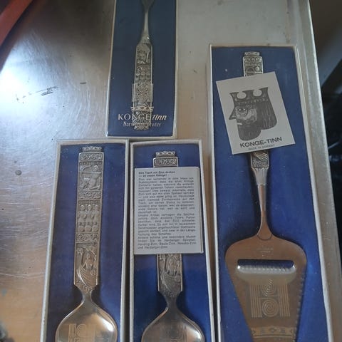 Kagespade i norsk kongetin, ubrugt og i Norsk kongetin.