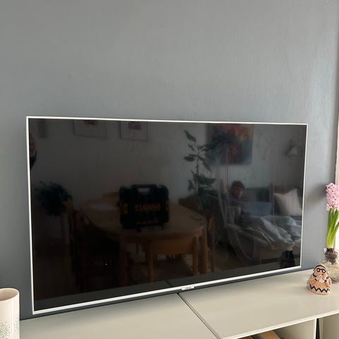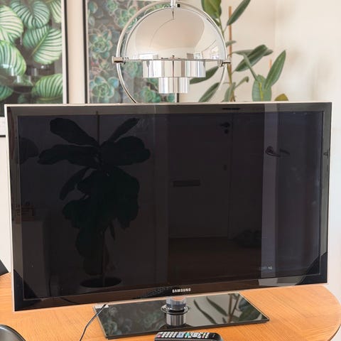 Samsung tv i sort med flot blank kant. Fladskærm velegnet til brug i stue, soveværelse eller andre rum, hvor der ønskes et tv til tilslutning af eksterne enheder som f.eks. tv-boks, spillekonsol eller medieafspiller. Wifi. Tv sælges uden fod eller ophæng
