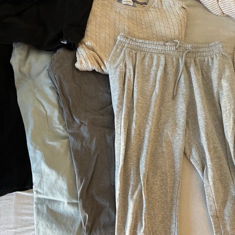 Sælger en rigtig god pakke med i alt 7 par herrebukser og jeans. Pakken indeholder forskellige stilarter, lige fra klassiske blå jeans til pænere bukser/chinos i sort og grå.