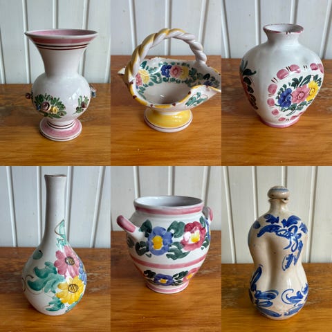 Leo Enna keramik kurveskål med hank og blomstermotiv