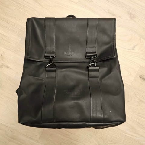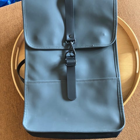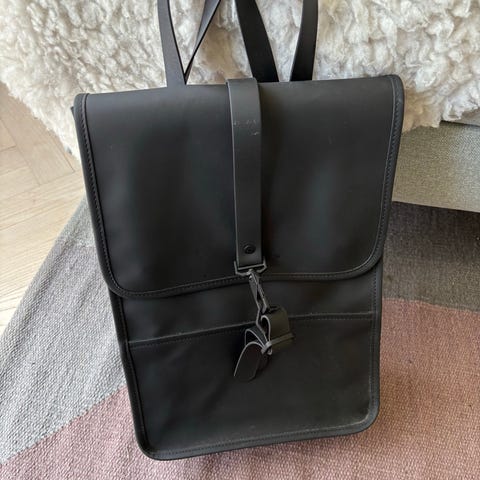 Rains rygsæk i kunstlæder i blå farve til unisex brug. Tasken har klaplukning med metalspænder foran og justerbare skulderstropper. Indvendigt er der et hovedrum samt en indvendig lomme med rem, der kan bruges til f.eks. laptop eller dokumenter. Egnet til daglig brug, studie eller arbejde.