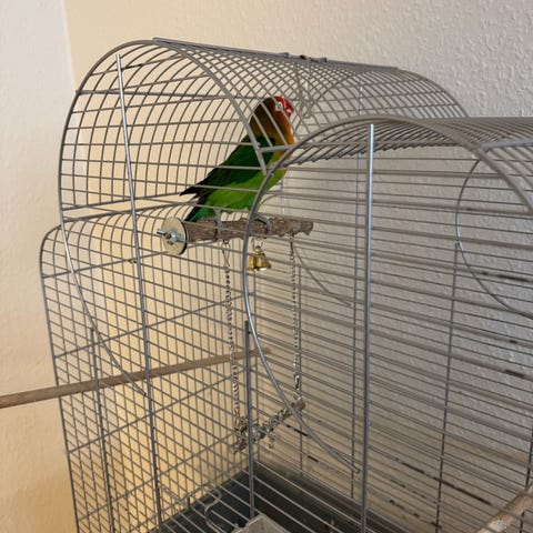 Jeg har en sød dværgpapegøje med alt udstyr til salg.