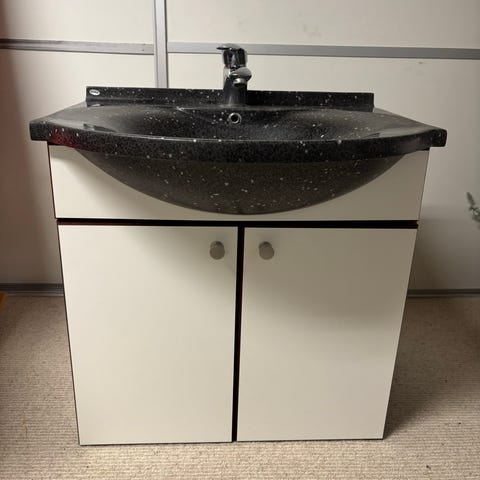 Badeværelsessæt brusekabine toilet håndvask spejlskab