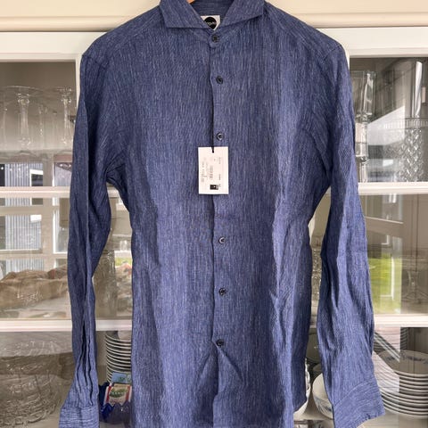 Hugo Boss Orange skjorte str S blå ternet 100 bomuld ny med tags
