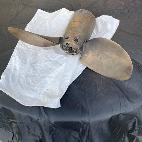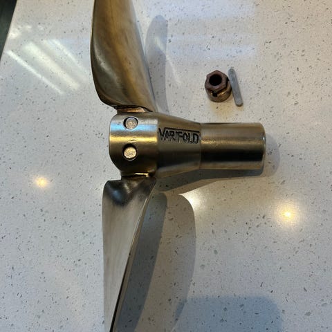 Wisco 2-pladet foldepropel i messing. Har siddet på en sejlbåd at typen Phantom 42. Aksel diamater 30mm