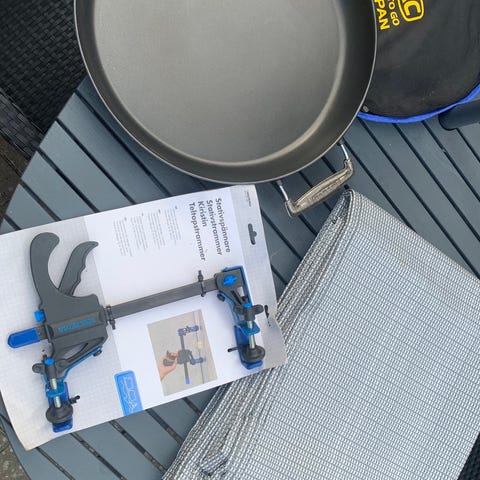 Camping sæt køkkenudstyr rustfrit stål og plast grøn