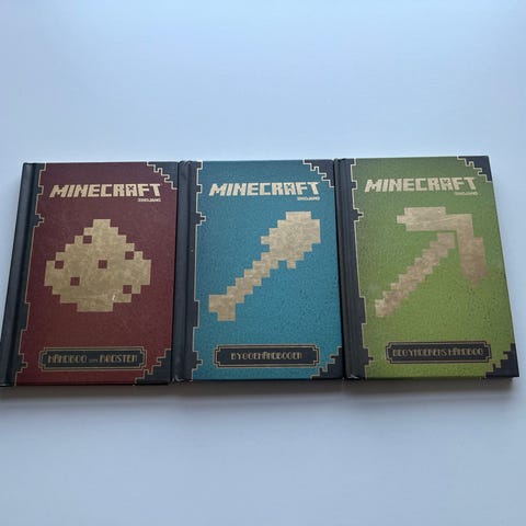 2) Mur Lafferty "Minecraft – De forsvundne dagbøger" – dansk bog baseret på Minecraft-universet, udgivet på Politikens Forlag. Indbundet udgave med illustreret for- og bagside.