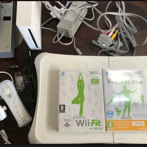 Nintendo Wii konsol med Wii Fit balance board og spil.