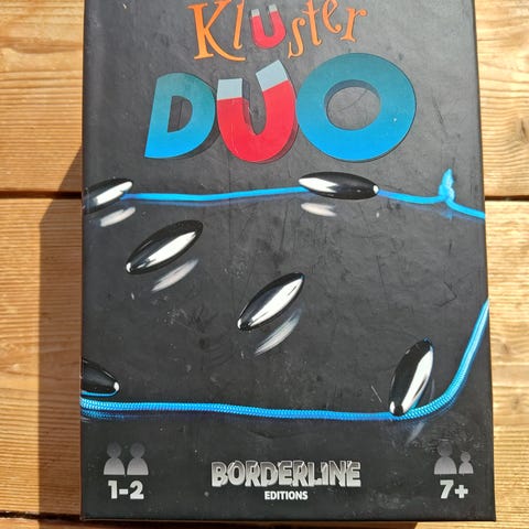 Kluster brætspil magnetisk familiespil …. Kun brugt en gang Spillet består af magnetiske sten, en snor der danner spilleområdet samt en stofpose med Kluster-logo til opbevaring. Spillet er beregnet til 1-4 spillere fra 14 år og op. Formålet er at placere de magnetiske sten inden for snoren uden at de tiltrækker hinanden og klistrer sammen. Leveres i original æske med spillevejledning trykt på indersiden af æsken.