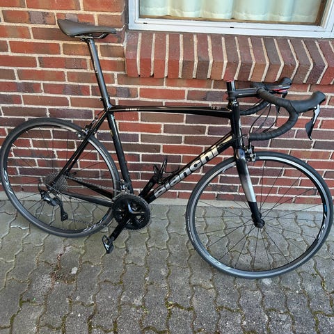 Look Keo pedaler, computermount (Garmin) samt flaskeholdere medfølger, så den står fuldstændig klar til en tur i forårsvejret.