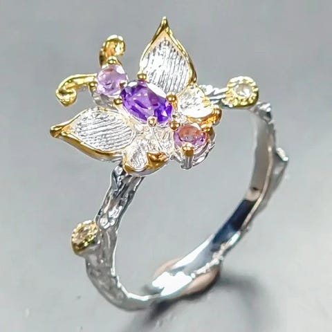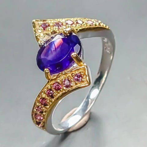 NY håndlavet safir ring i 18 kt. guld på sterling sølv