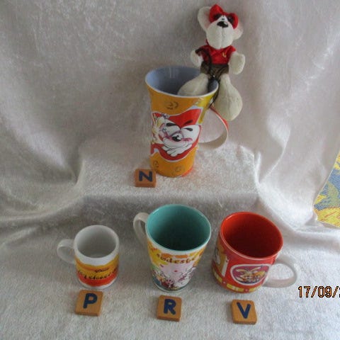 DIDDL krus med bogstaverne A , E og K. Højde 8,5 cm.