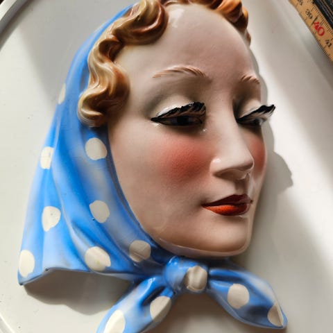 Cortendorf vægmaske i terrakotta, model 3683, Art deco, fremstillet i Vesttyskland i 1950’erne, højde:27, kan sendes for 70