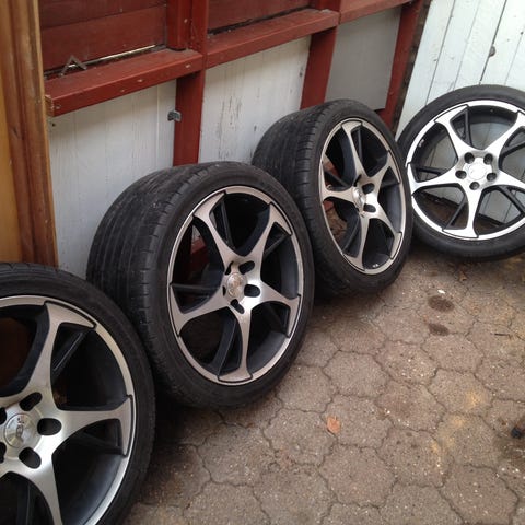 15"x7" Dayton Wire Wheels i guld og chrom i rigtig god stand. Egerne er belagt med guld i rigtig fin stand. Laget er tyndt, så man skal være lidt forsigtig når man rengør dem. De er købt i USA men sælger havde ikke tjek på krydsmålet, så de passede ikke til min bil. Så - de har ligget på lager i 10 år. 3 dæk holder luft, 1 gør ikke. Bud er velkomne - jeg har ikke noget at bruge fælgene til - de passer måske på VW eller Audi.