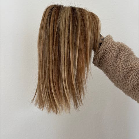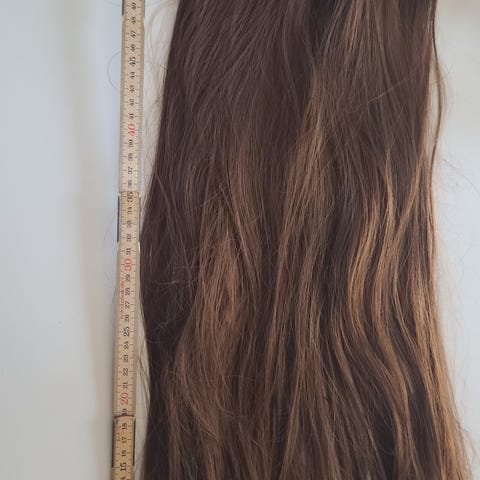 Paryk dame. Syntetisk lys med gråt skær. Mærke ukendt
