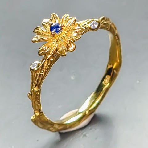 NY håndlavet Stjerne Rubin ring i 18 kt. guld på sterling sølv med Topaz
