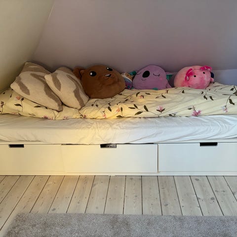 NORDLI sengestel er ikke kun en komfortabel seng. Det er også en opbevaringsløsning med 3 rummelige skuffer. En praktisk løsning til tøj, ekstra dyner og søde drømme – på meget lidt plads.