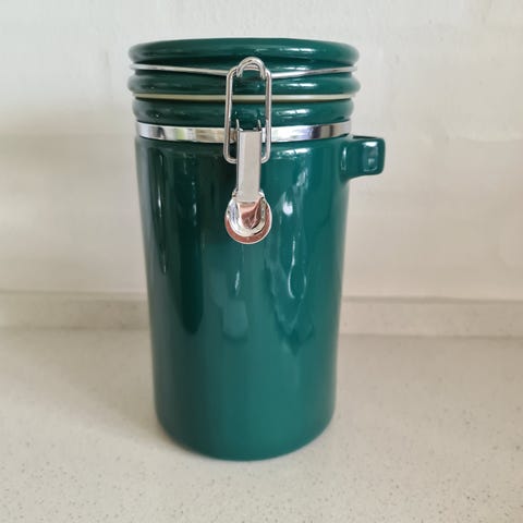 12 små porcelænskrukker/-dåser fra Stelkompagniet. Opbevaringsglas med patentlåg. Med gummiring, som gør dem lufttætte. Diameter 8 cm. Højde 9,5 cm. Fire lysegrønne, fire lyseblå og fire lilla/blommefarvede. Kan for eksempel bruges som tedåser eller krydderidåser. Sælges kun samlet