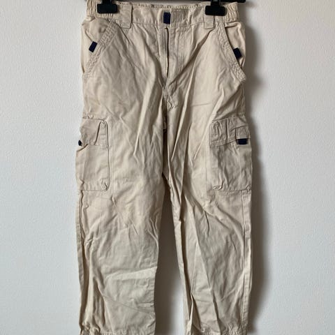 børnebukser i str. 152 til børn, unisex. Bukserne er hvide og fremstillet i bomuld. Klassisk buksemodel med bæltestropper og lommer for og bag. Velegnet til hverdagsbrug for både drenge og piger i størrelse 152.