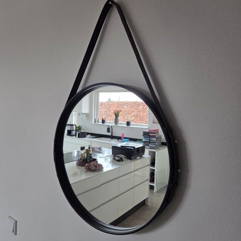 Spejlet er i god stand og har en læder snor