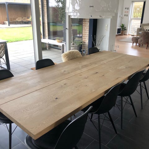 Smukt og solidt spisebord i massivt egetræ med plads til hele familien og gæster.